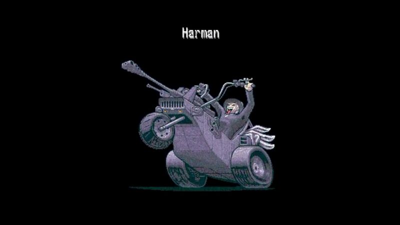 A screenshot from the PC version of Killer7, which shows Harman’s sprite in the credits section of Alter Ego. BRRRRMMMMMM!!!